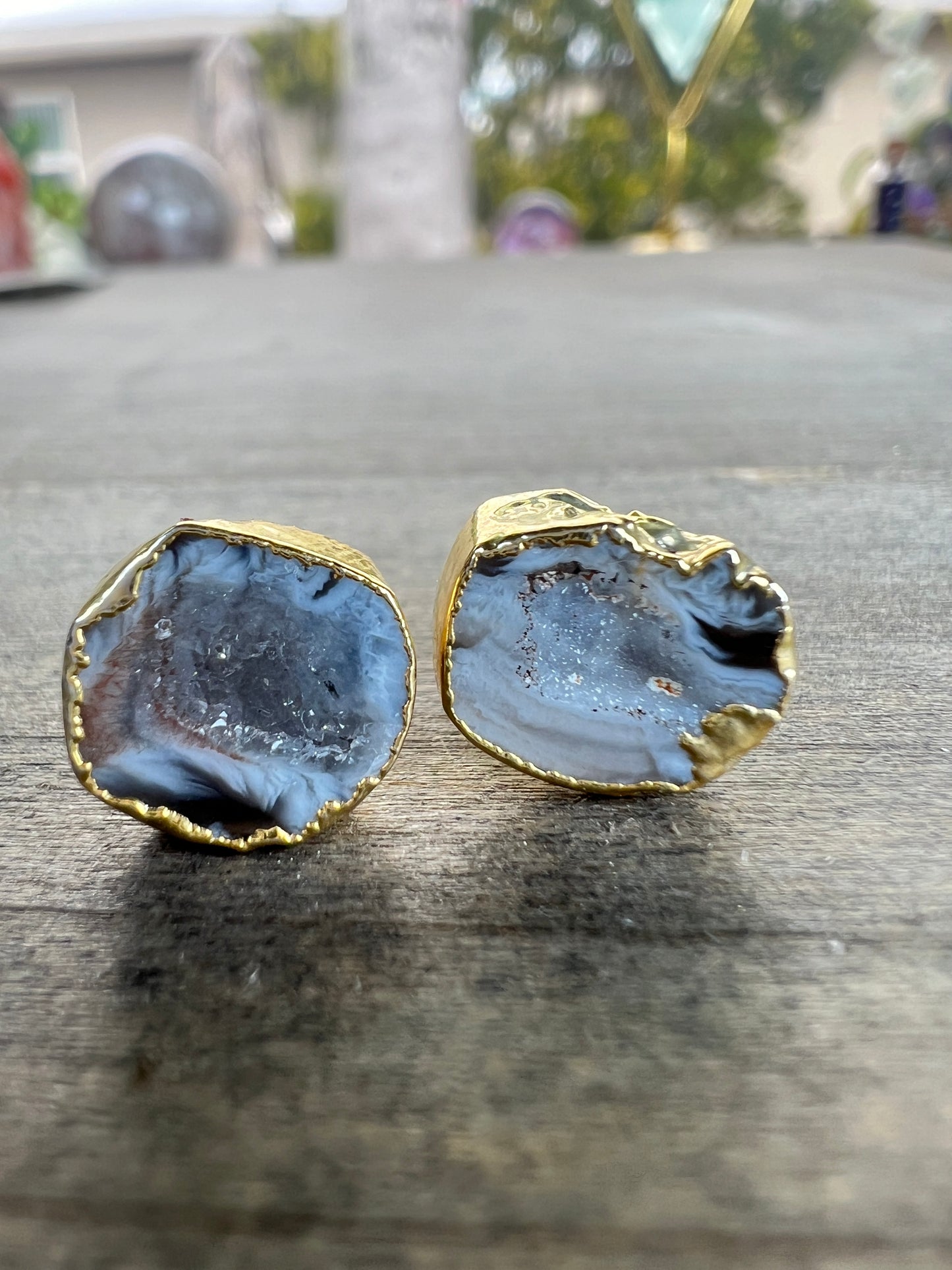 Hypoallergenic Gold Electroplated Druzy Agate Studs