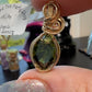Olive Green Cubic Zirconia Pendant – 14k Gold-Filled Swirly Design with Matching Accent Bead for Growth & Prosperity