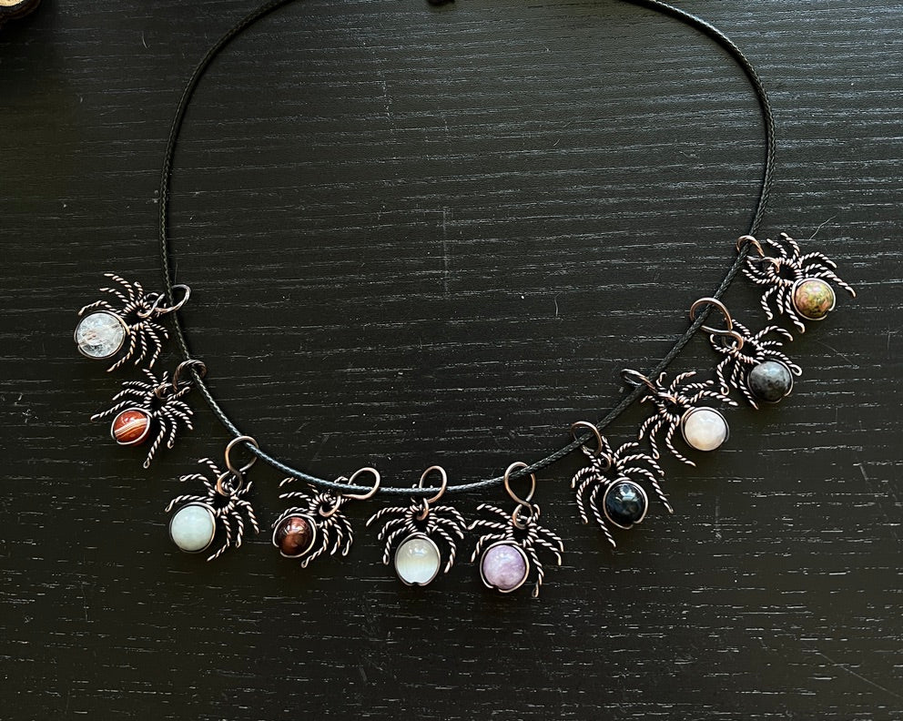 Halloween Spider Pendant Necklace | Oxidized Copper Wire-Wrapped Crystal Jewelry | Witchy Gift