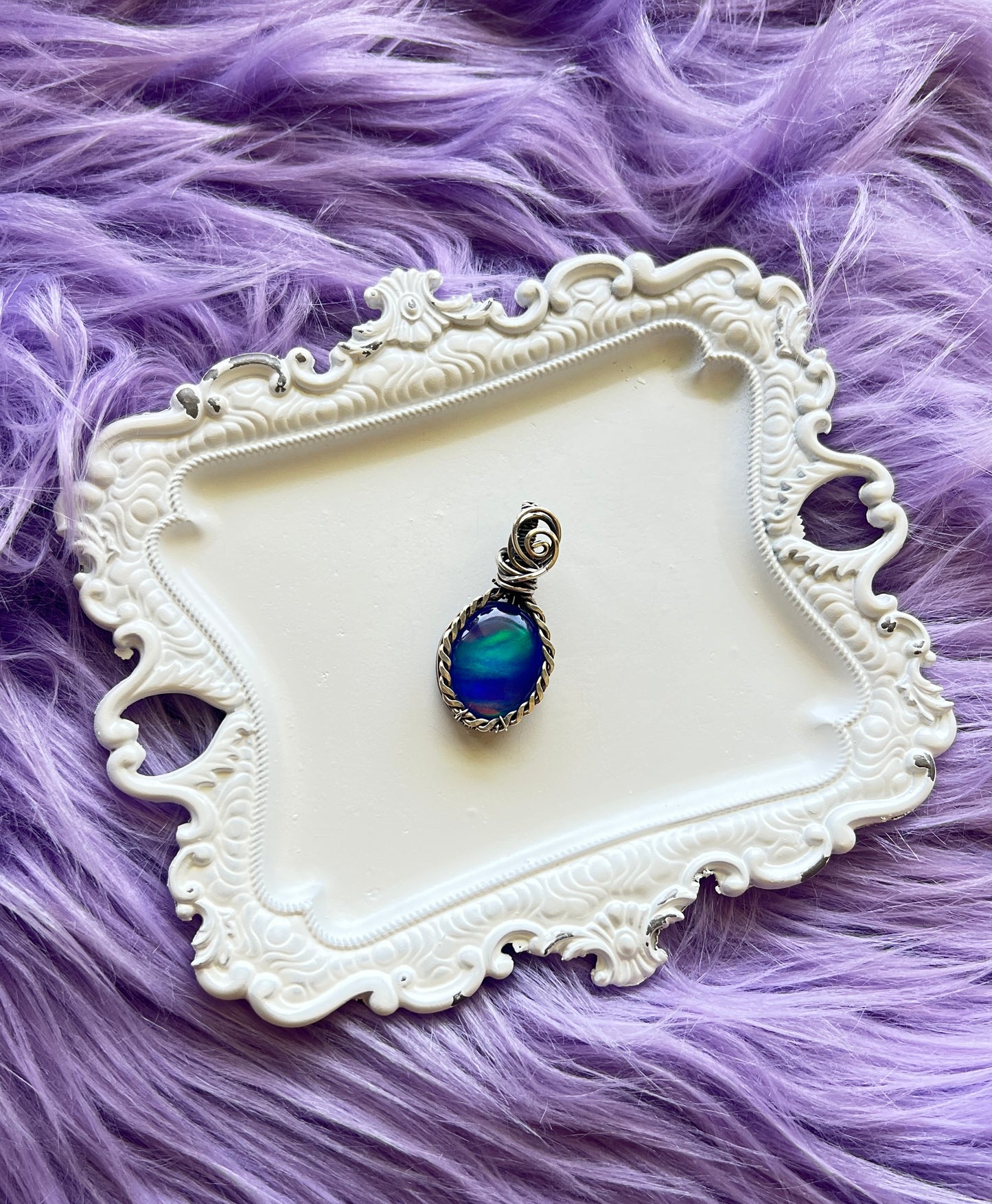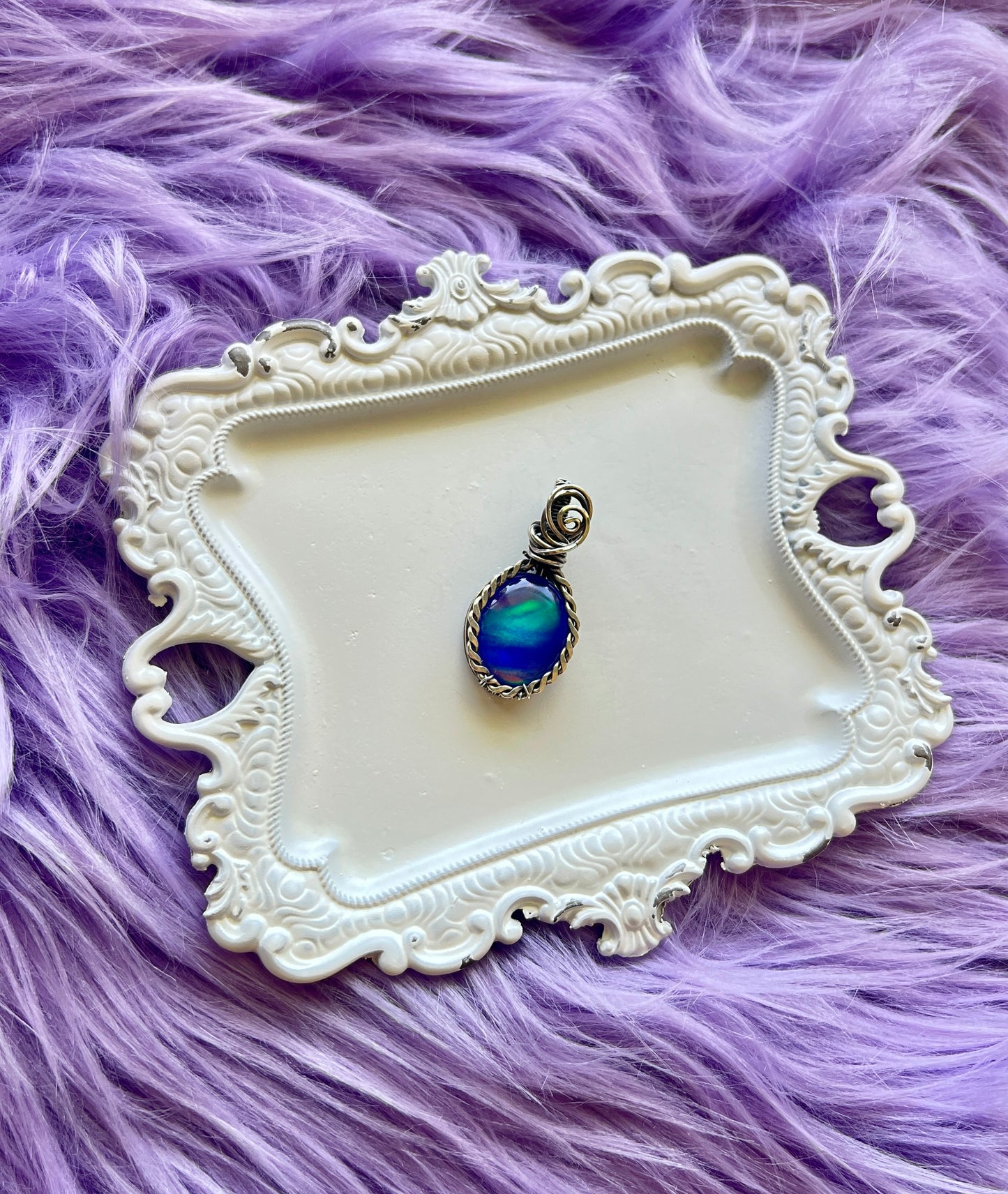 A dreamy little pendant that looks like it was plucked straight from a nebula. This piece features an Aurora Opal doublet, layered with Himalayan quartz to amplify its shimmer and energy. The vivid flashes of teal, violet, and deep indigo dance in the light like a cosmic ocean.